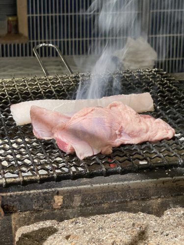 炭火が仕上がって目の前に石見ポークのハラミがどど~んと!じっくり焼いてくださいました!