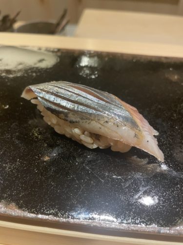 次はサヨリ!サヨリだな~と思いながら口に運ぼうと思ったら、ん?なんだこのいい香りは!サヨリに何かしらの仕事が加わっているようです。なんとも言えない芳醇な香りが素晴らしい!いただいてみると、衝撃!一緒に行った全員が