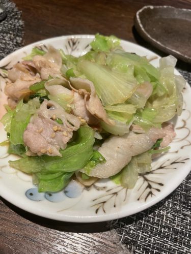 まずは気になった豚レタスをお願いしました!レタスと豚肉を鉄板で炒めたら絶対美味しい!私鍋にも実はレタス入れるのが好きなんです。白菜やキャベツももちろん好きですが、レタスを入れた豚しゃぶなんて最高なんですよ~!