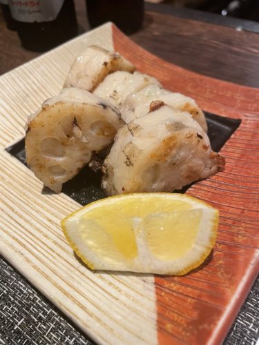 続いて蓮根のはさみ揚げをお願いしました!魚のすり身が合わせてあるようでした!レンコンってほんとなんにでもあうから万能ですね~!食感でお酒が飲めちゃいます!