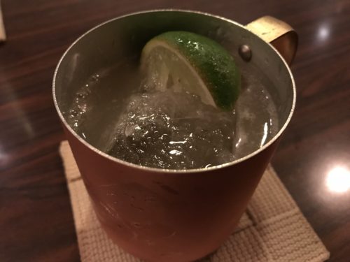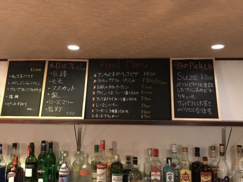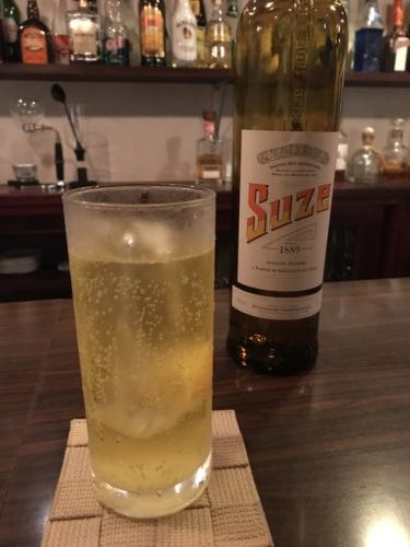 席について何にしようかなと迷っていると今月のおすすめのお酒でいっぱいどうですか?とマスターから。ぜひお願いします~!ということで、SUZEという名前のお酒をトニックと炭酸で割ってもらいました。両方で割ると甘すぎなくて飲みやすいそうです。確かにおいしい~!
