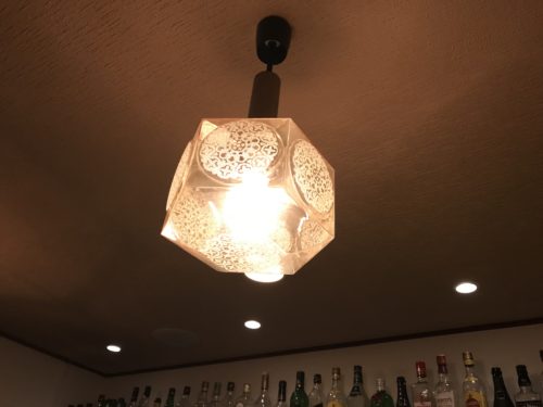 ふとランプのシェードが気になりました。ガラス製でかなり昔に作られたものというのはわかります。とっても美しい~。なんだかうっとりしちゃいました。マスターもこれがお気に入りだそうです!