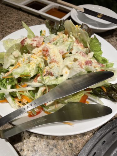 続いてシーザーサラダが登場しました!ボリューム満点でおいしそうでしょう!お肉をたらふく食べる前にやっぱり野菜をたっぷりととっておかないと!笑
