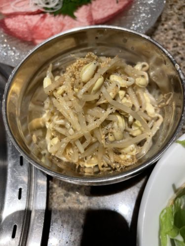 キムチももやしナムルも美味しいです!この日はお腹が減っていたのでお肉が登場するまでにがっつきすぎてしまいました。笑
