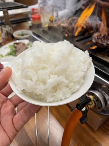 さて、焼肉かのんさんの続きです。おいしいコウネや牛タンをいただいて次に登場したのが、、、土鍋ごはん!