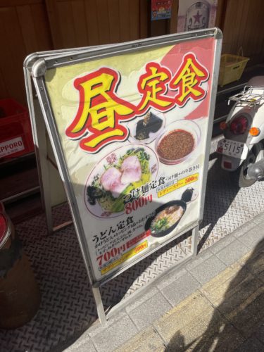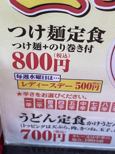 お店の前の看板をみてみると、、えええ!つけ麺定食が800円!つけ麺だけでも普通は1000円を超える感じなのに?!本当に?!さらに海苔巻きまでついてくるとは!