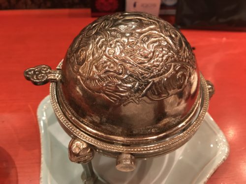 さて9月が終わってしまうのがさみしいな~と思いながら10月がやってくるのを楽しみにしながら先ほどの香港海鮮料理せがわさんの続きをご紹介します。おいしいお刺身の後に登場したのはスープらしき入れ物!