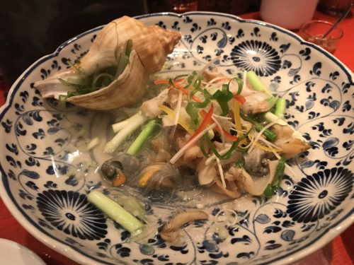 つづいてつぶ貝が登場しました!どうやっていただくのかな~と思ったら専用の出汁につけてしゃぶしゃぶして食べてくださいとのこと。こんなしゃぶしゃぶは初めてです!