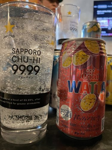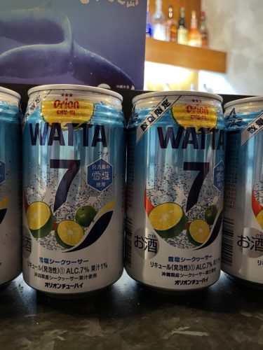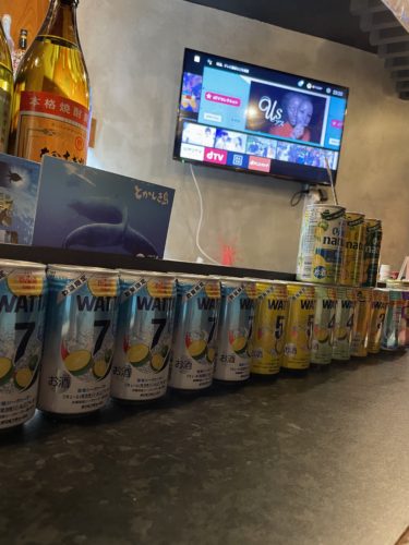 カウンターにずらりと並べられた缶チューハイがこれまたかわいいですね~!よ~くみるとオリオンビールって書かれています。見たことない!