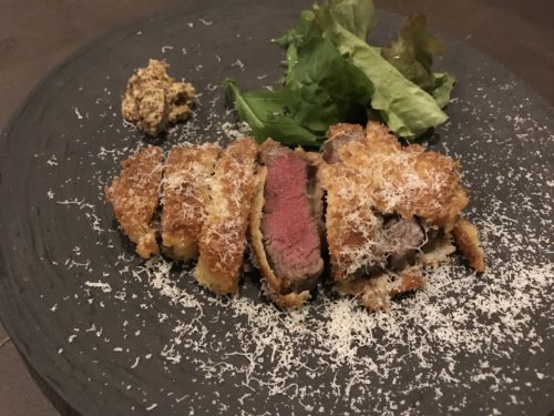 牛ヒレ肉のカツレツをお願いしました~!どんなカツレツがでてくるのか楽しみにしていると、揚げ加減の絶妙さが伝わってくるいい色合いで登場!いただいてみると、、これまたおいしい~!ジリノさんかなりおいしいです~!しかもリーズナブル!