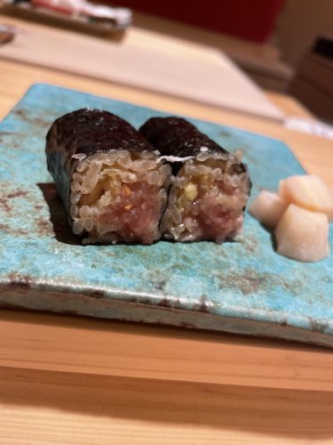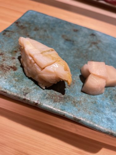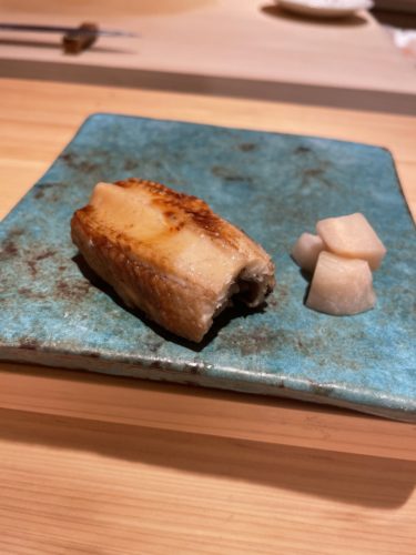 大好きなハガツオが登場した際はかなり興奮しました!結構厚めに切ってくださっています。いただいてみると、やっぱりうまい!久々にいただけて幸せ~!
