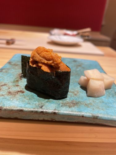 スミイカはそのままお醤油でいただきます。ここでふと気づいたのですが、まいもんさんは出されたお寿司はそのままいただけるスタイルなんですね!