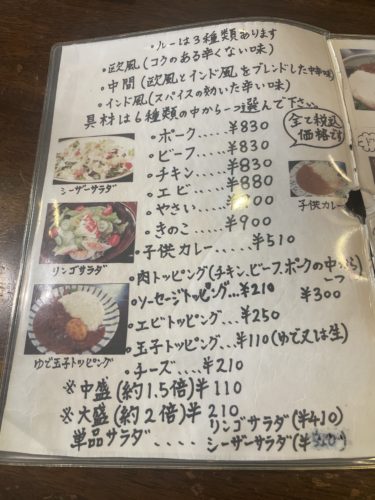 この日もタイミングよくすぐに着席することができました。メニューを一応は眺めながらお願いします。もうずっと同じメニューを頼み続けています。チキンカレーのインド風の中盛!