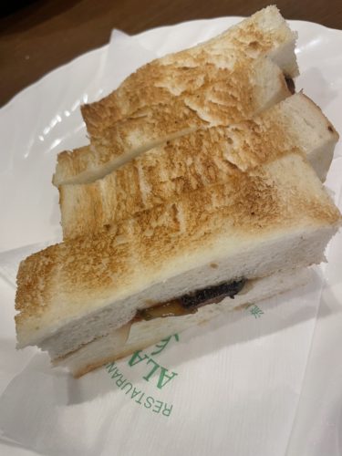 そしてもう一つサンドイッチでも食べようと思ってメニューをみてみると、ハンバーグサンドに目がとまりました。そういえばいままでハンバーグサンドを食べたことがないような、、、Aランチのハンバーグとかぶりますがサンドでいただくとまた違った感じがするかな~ということでこちらもお願いしました!