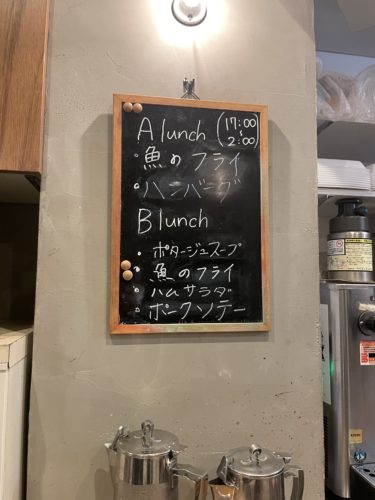 そしていつものごとく今日のランチはなんだろうと確認。この日はハンバーグと魚フライ!大好物の組み合わせでした!ということでAランチをいつものようにお願いしました。