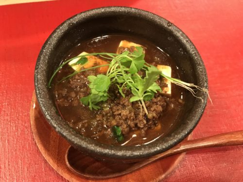 和食屋さんの麻婆豆腐をお願いしました!豆腐が固めなので食感がいいですね~!お肉もしっかりしていて超おいしいです!