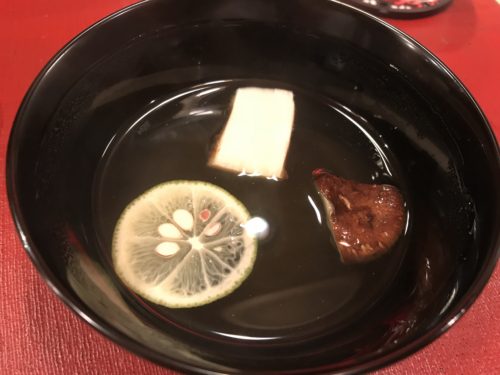 松茸のお吸い物を出してくださいました!松茸のいい香りがするのといいお出汁をひいていらっしゃるので本当においしいです~!料理むら上さん最高ですね!