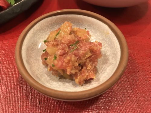 かわはぎの白和えを作ってくださいました!コリコリした食感が最高でしたよ~!おいしい~!