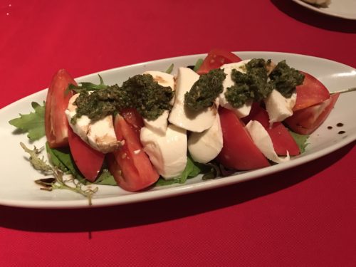 まずは生ビールで乾杯させていただいてトマトとモッツァレラチーズのサラダをいただきます。うん、おいしい~!