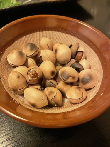 銀杏をお願いしました!アッツアツで美味しい銀杏!焼酎のソーダ割と一緒に!権八さんの焼酎はめちゃくちゃ濃い!ありがたい~!