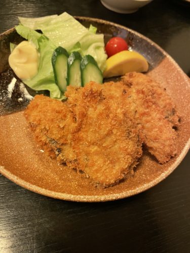 続いてアジフライをお願いしました!権八さんのアジフライ間違いなく美味しいって確信があります!登場したアジフライ美味しそう!