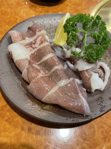 ここでイカもお願いしました!焼肉屋さんのイカってなんでこんなに美味しいんだろう?しっかりやいてタレをたっぷりつけて、そしてもう一回やいて勝手に屋台のイカ焼き風と言いながらいただきます!香ばしさが加わってとっても美味しい~!