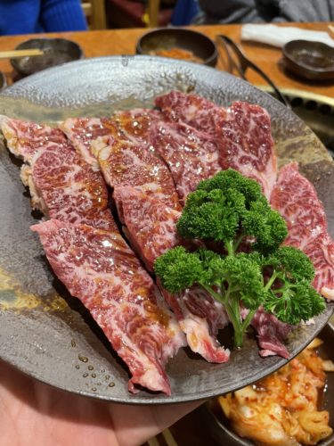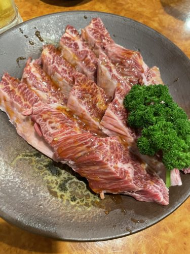カルビをしっかり焼いていただいてみるとめっちゃめちゃ美味しい~!脂の甘みが素晴らしい~!さすが鉄仙さんです!ロースも同じくとっても美味しい~!