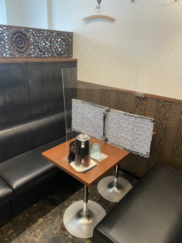 お店の方に案内いただいて2階に通していただきました。2階はテーブル席でした。私は好物のポークチャップをお願いしました!打ち合わせを一緒にした方はポークソテーを特製ポポットソースで!