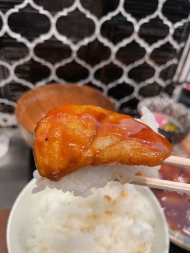 豚肉にソースがかかっているという感じではなく、豚肉がソースをまとっている感じでした。