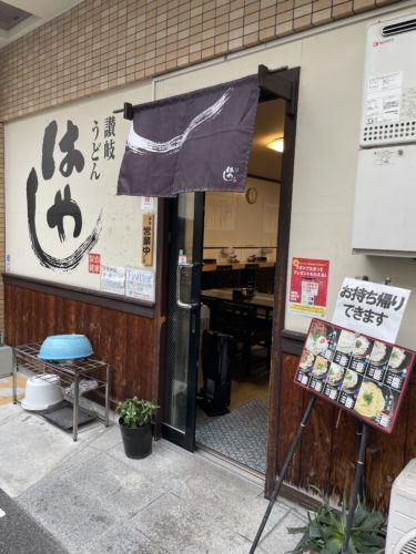 さて、昨日の夜からちょっと冷え込んできたので今日のお昼は温かいうどんを頂こうと決めていました。伺ったのはパークサイドホテル広島から徒歩5分ほどの讃岐うどんはやしさんです。お店に向かっていると知人もはやしさんに入っていくところでした。