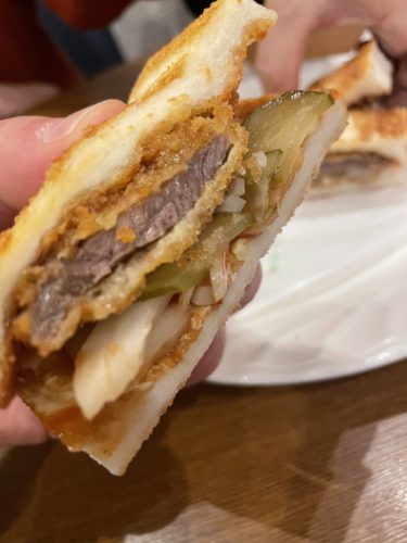 アラスカさんのカツサンドはピクルスとソースの相性がほんと抜群なんですよね~!ほんのり甘さと酸味のバランス素晴らしい!