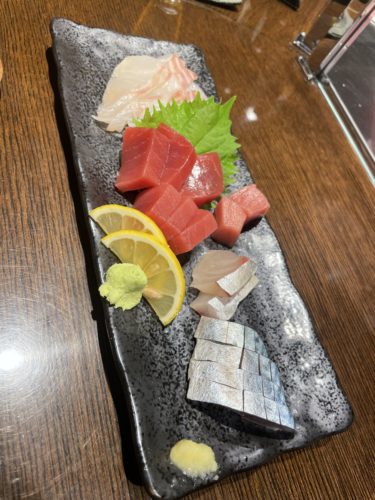 まずはお刺身の盛り合わせからいただきます。しんごさんの凄いところはこのお刺身!毎日その日その日でいい魚を仕入れてくれています。どれをいただいても抜群に美味しい~!