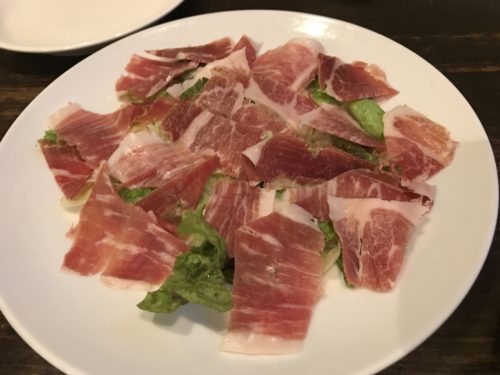 まずは生ビールで乾杯させてもらって、まずはハモンセラーノをお願いします!いや~おいしいですね~!超おいしい~!ビールがぐいぐい進みます!