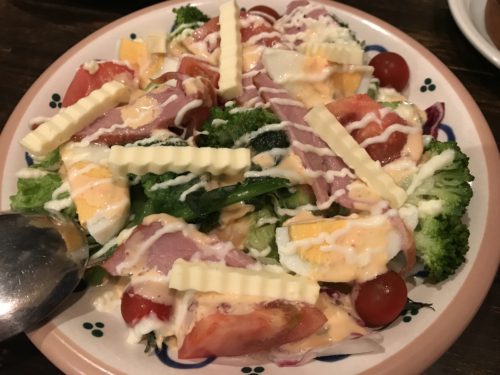 サラダもお願いしました!IDEMOTOさんのサラダおいしそうでしょう!色合いといい野菜のカットの大きさといい!素晴らしいです!食べるのが楽しくなりますよ~!