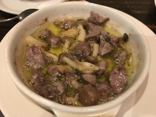 砂ずりをアヒージョでお願いしました!一緒にパンも!ズリをたのしんだあとに、パンをオイルに浸していただくとこれがまた本当においしい~!あ~幸せです!