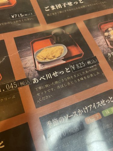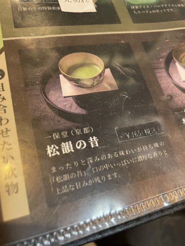 入口のメニューを見ていると本わらび餅が!大好物なのでこれにしよう!