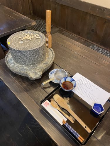 「もしよろしければ石臼できな粉を挽いてみますか?」