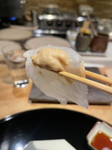最初のお料理は北海道は根室のにぎりこ!貴重なにぎりこを頂けました!食感も塩加減も素晴らしい!
