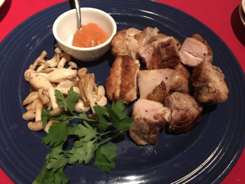 つづいて鶏肉をお願いしました!鶏肉が大好物な私なのでどんな感じで焼いてくださるのかな~と楽しみにしているととってもいい色合いで鶏肉が登場しました~!おいしそう!これですよ、これ!皮はぱりっとして中はちょうど火が通ったくらいの感じで!これが最高なんですよね~!