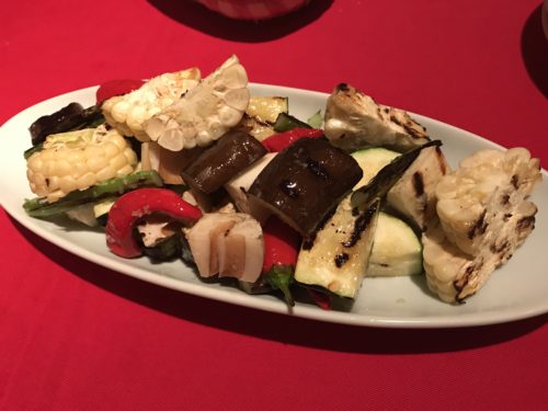 サングリアと一緒にお願いしたのが焼き野菜!常連の先輩が頼まれたのですが、こんなのあったんだ~と。登場したお野菜はとってもおいしそう!野菜そのものの食感がちゃんと残っているので楽しいです!トウモロコシもとってもおいしかったです~!