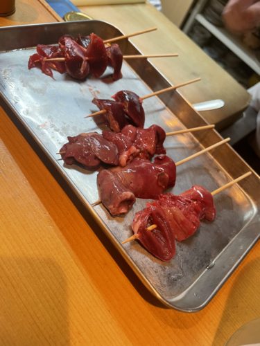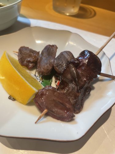 尾長鴨をまるごとさばいているのでもちろん肝が!串焼きにしてもらっていただきます。めちゃめちゃ美味しい~!最高です!