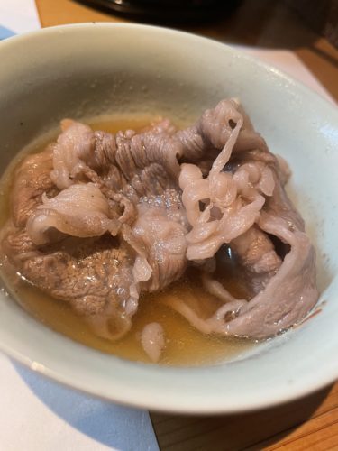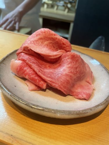 めちゃめちゃサシ入っているじゃないですか!びっくり~!しゃぶしゃぶしてもらっていただきましたが、とろけまくり~!(笑)でも一枚で十分でした。