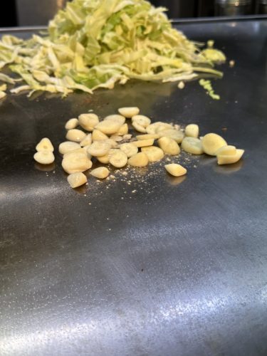 ということでまずはボリュームたっぷりのにんにくを鉄板で焼いていきます。