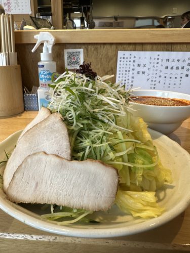 そしてしっかりまぜたつけダレに野菜と麺をたっぷりつけていただくと、うま~~~!これはうまい!私の大好きな風味です!キャベツもたっぷり、そして甘い!たまらないです~!