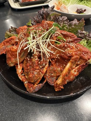そしてこの日のメインが登場しました!ヤンニョムケジャン!甘辛の風味がたまんない~!蟹を食べるというよりはこの風味を楽しむって感じでしゃぶりつくしました!ごはんにワンバンさせてごはんにたっぷり味をつけると無限にいけちゃいます!(笑)