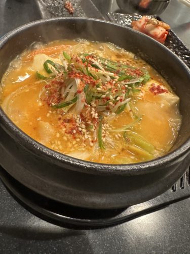 豆腐チゲもいただきました!このスープもとっても美味しい~!やけどに気を付けながらいただきます!最後ごはんを投入していただくと最高なんですよね~!