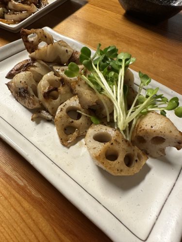 レンコンは塩コショウで炒めていただきました!これまた最高!食感といい塩加減といいとっても美味しいです!