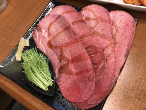 つづいて脂身の少ないお肉を食べたいな~とお願いすると牛タンが登場しました!ものすごい大きな牛タンですね~!少し焼いていただいてみるとかなりおいしい~!脂身が少ないんですがでもかなりジューシーです!超おいしいです~!