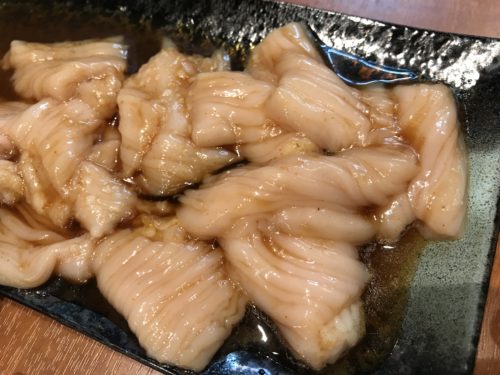 最後は大好物のシマチョウが登場しました!焼肉リキさんのシマチョウは本当に美しいです。きちんとした処理がされていてつややか。脂がついているほうがお好きな方もいらっしゃいますが私はこういうタイプのシマチョウが大好物です。本当にいくらでもたべれちゃうのでこまっちゃいますよね~。甘みすら感じるくらいのおいしさでした!