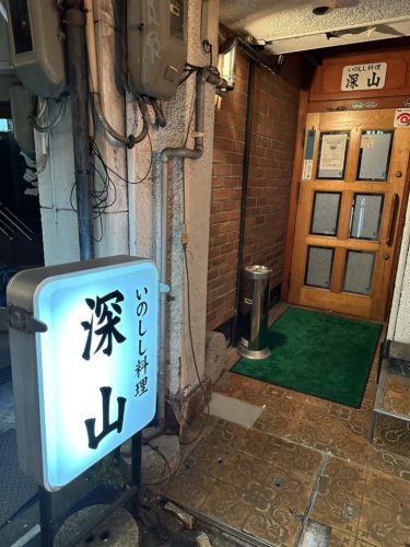 さて、イノシシの猟期も無事終わりましてしっかり美味しいイノシシが手に入ったとの連絡をいただいたのでいつもの深山薬研堀店さんに伺ってきました。